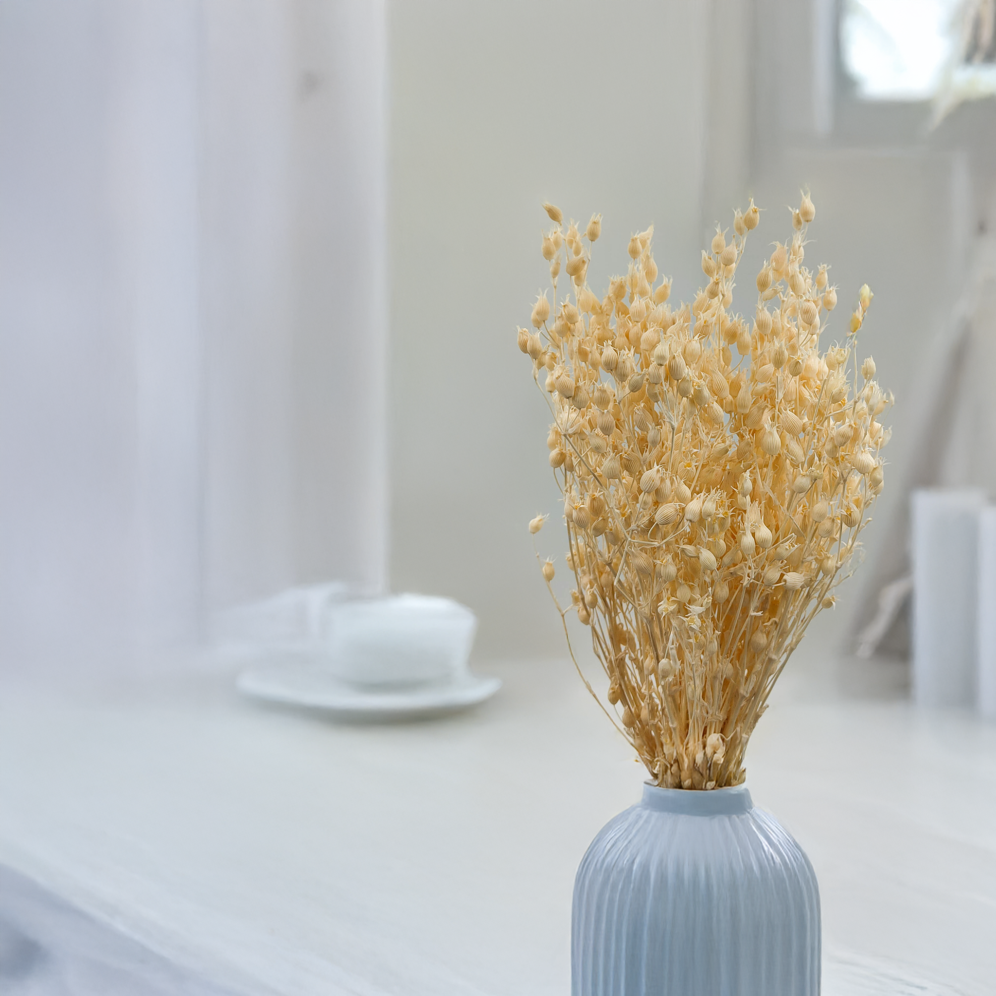 Gebleichte Silene steht für pure Eleganz. Mit ihrem hellen, fast elfenbeinfarbenen Ton bringt sie Licht, Klarheit und feine Struktur in jede Dekoration – perfekt für dezente und natürliche Gestaltungen.