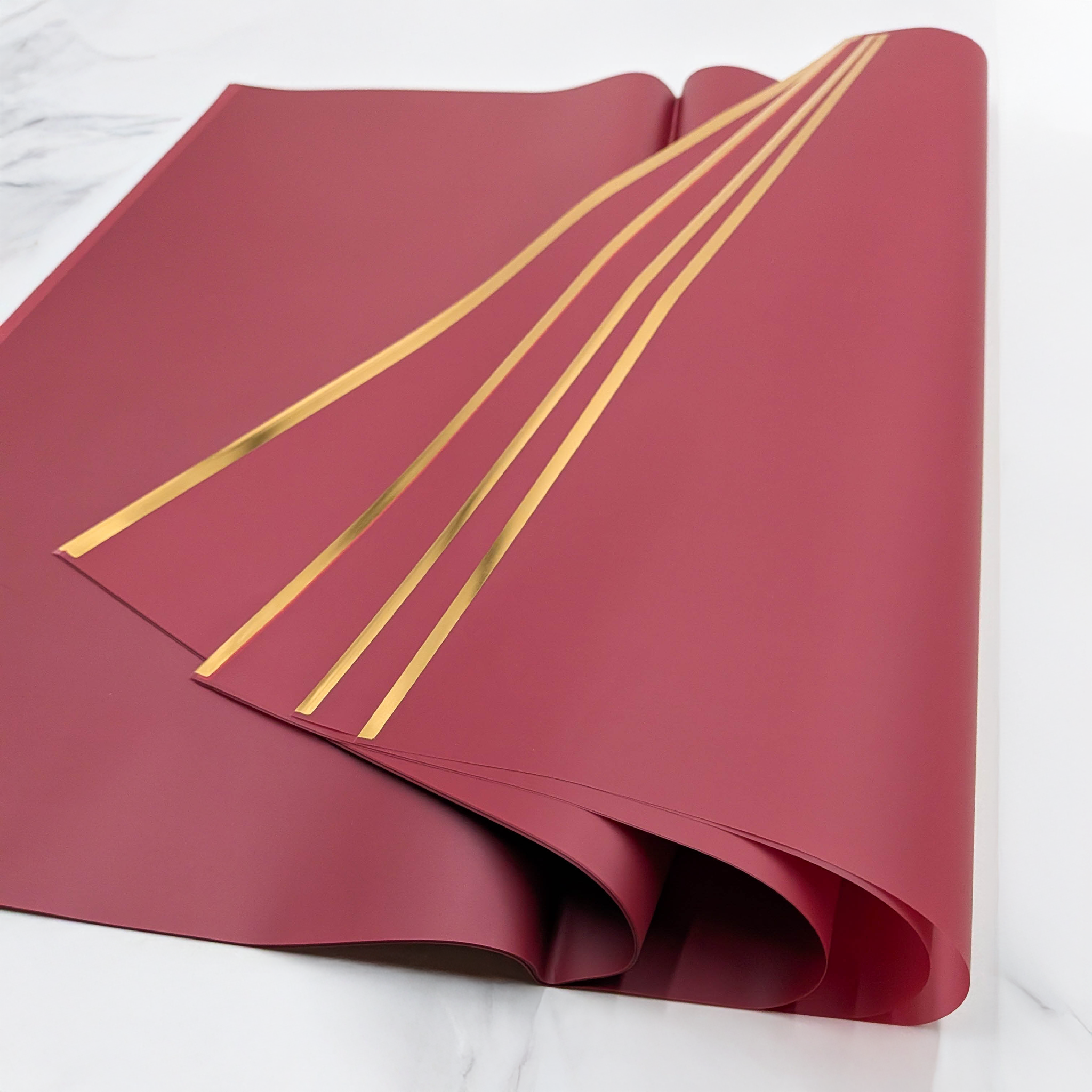 Wenn Sie eine elegante, strapazierfähige und dekorative Verpackung suchen, ist die "Stripe"-Folie in Weinrot die richtige Wahl.