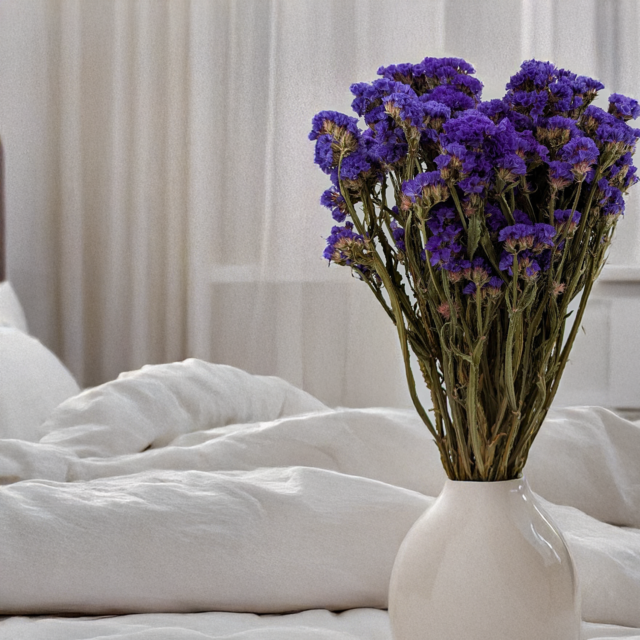 Getrockneter Strandflieder ist ein dekoratives und langlebiges Element, das sich perfekt zur Ergänzung von Innenräumen und Blumenarrangements eignet. Sein intensiver Violettton verleiht jedem Raum eine elegante, raffinierte Note. Durch natürliche Trocknung behält er lange seine Form und Farbe.