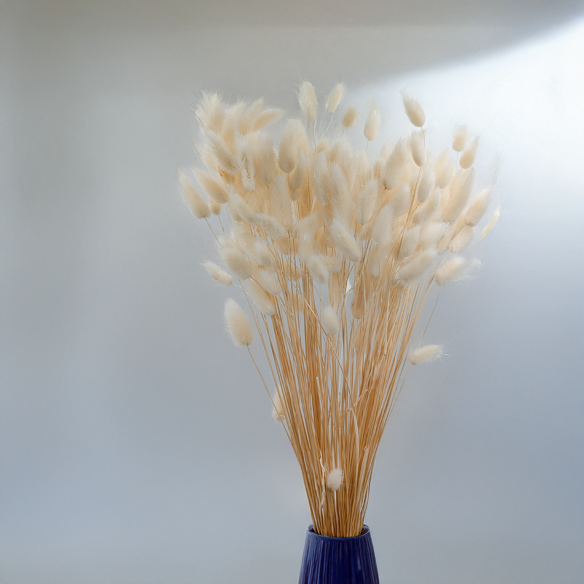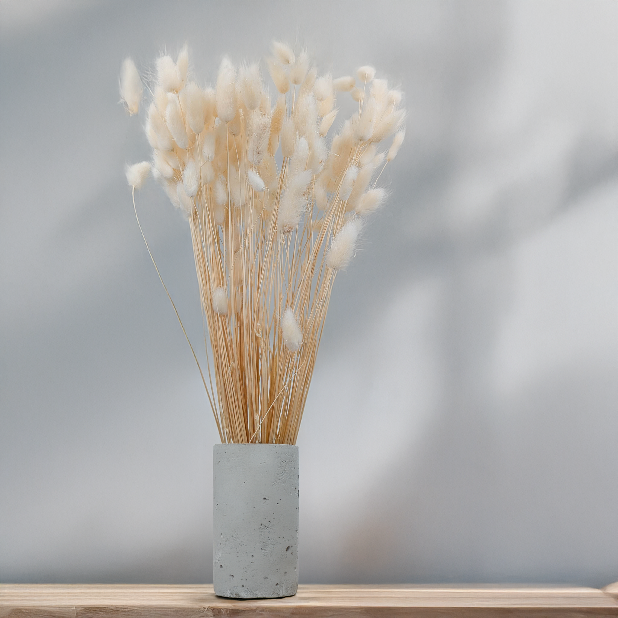 Gebleichtes Lagurusgras in Biscuitfarbe verleiht Arrangements eine warme, natürliche Note. Der sanfte Ton aus Creme und Beige steht für Ruhe, Natürlichkeit und schlichte Eleganz – perfekt für Boho-, Scandi- oder Japandi-Dekorationen. Die Bleichung sorgt für Helligkeit und gleichmäßige Farbgebung, ohne die flauschige Struktur zu verlieren.