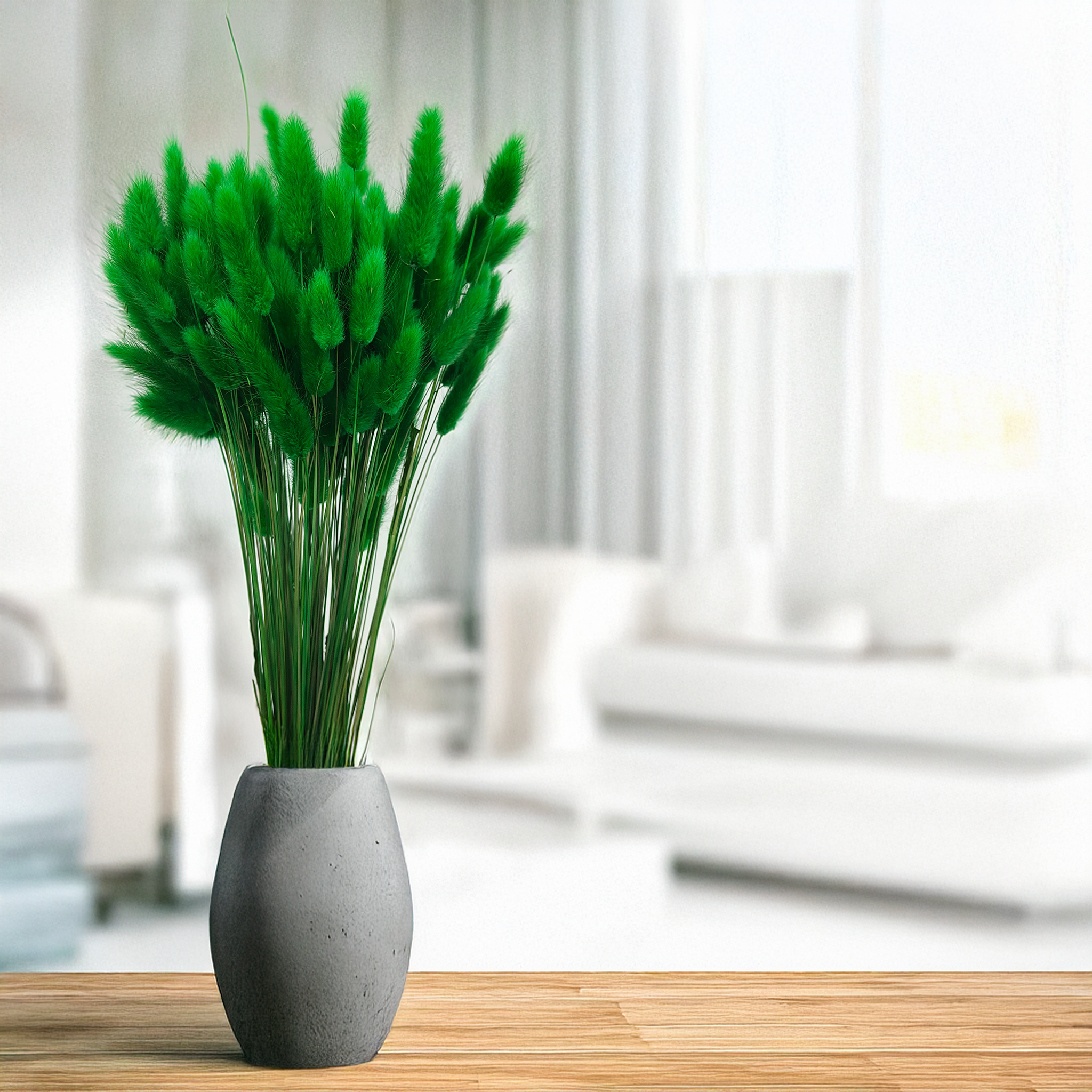 Grüner getrockneter Lagurus (Hasenschwanzgras) bringt natürliche Frische und Ruhe in jede Dekoration. Grün steht für Ausgeglichenheit, Erneuerung und Naturverbundenheit – ideal für boho-inspirierte, rustikale oder umweltfreundliche Arrangements. Die weichen Ähren verleihen floralen Kompositionen Struktur und Natürlichkeit.