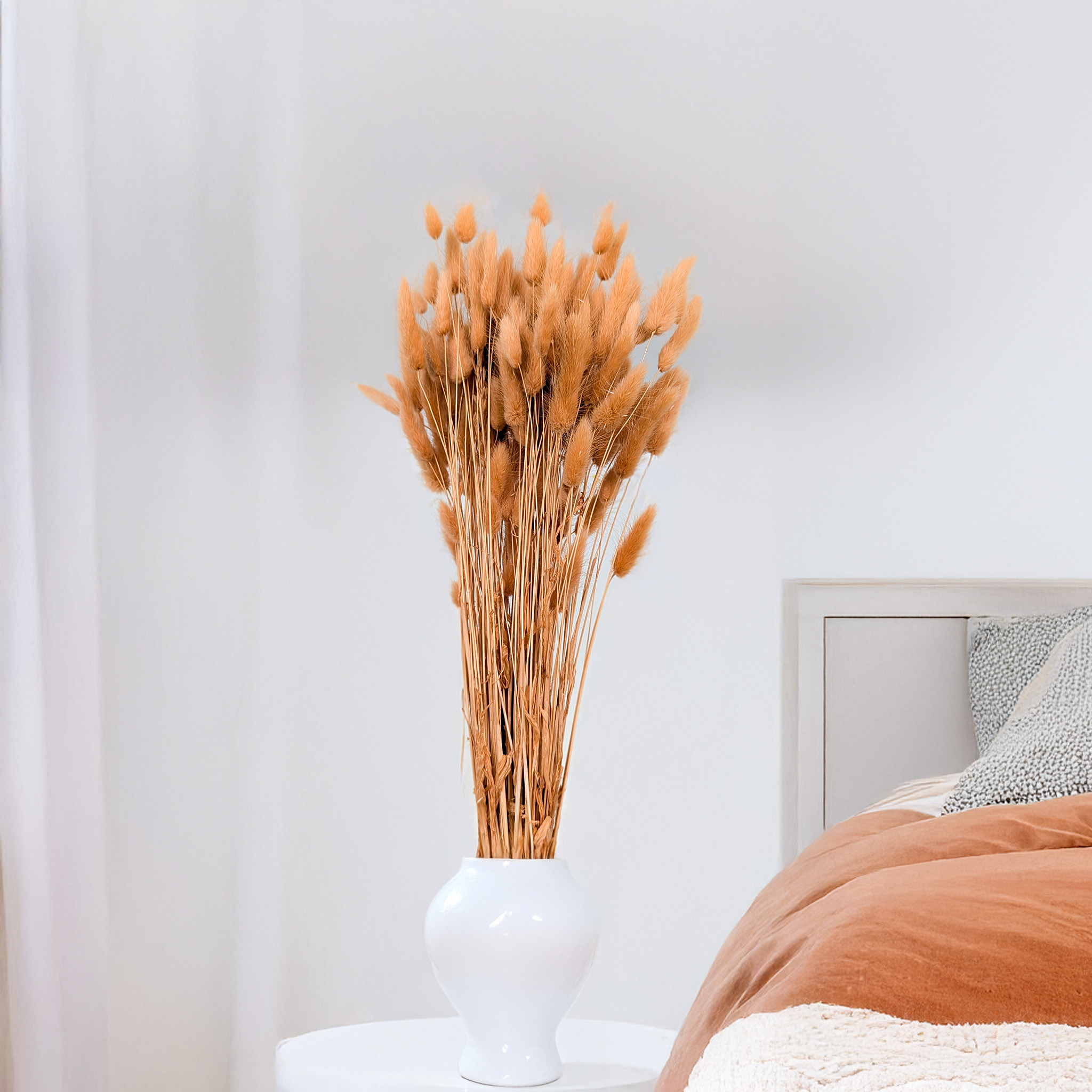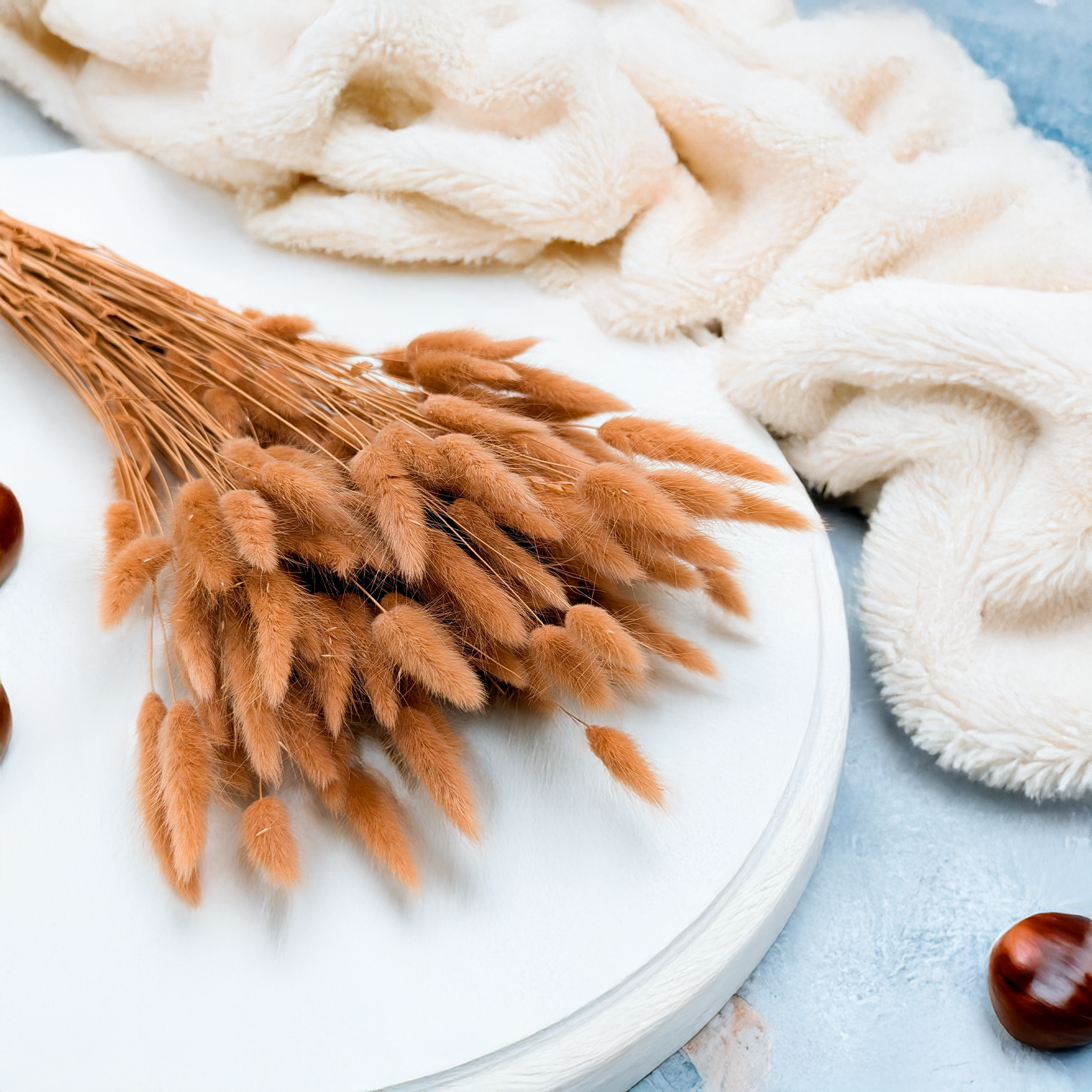 Walnussbrauner getrockneter Lagurus (Hasenschwanzgras) ist eine warme, erdige Ergänzung für florale Designs und natürliche Dekoideen. Der tiefe Braunton steht für Ruhe, Ausgewogenheit und natürliche Eleganz – ideal für herbstliche Arrangements, rustikale Räume und DIY-Projekte im Boho-Stil.