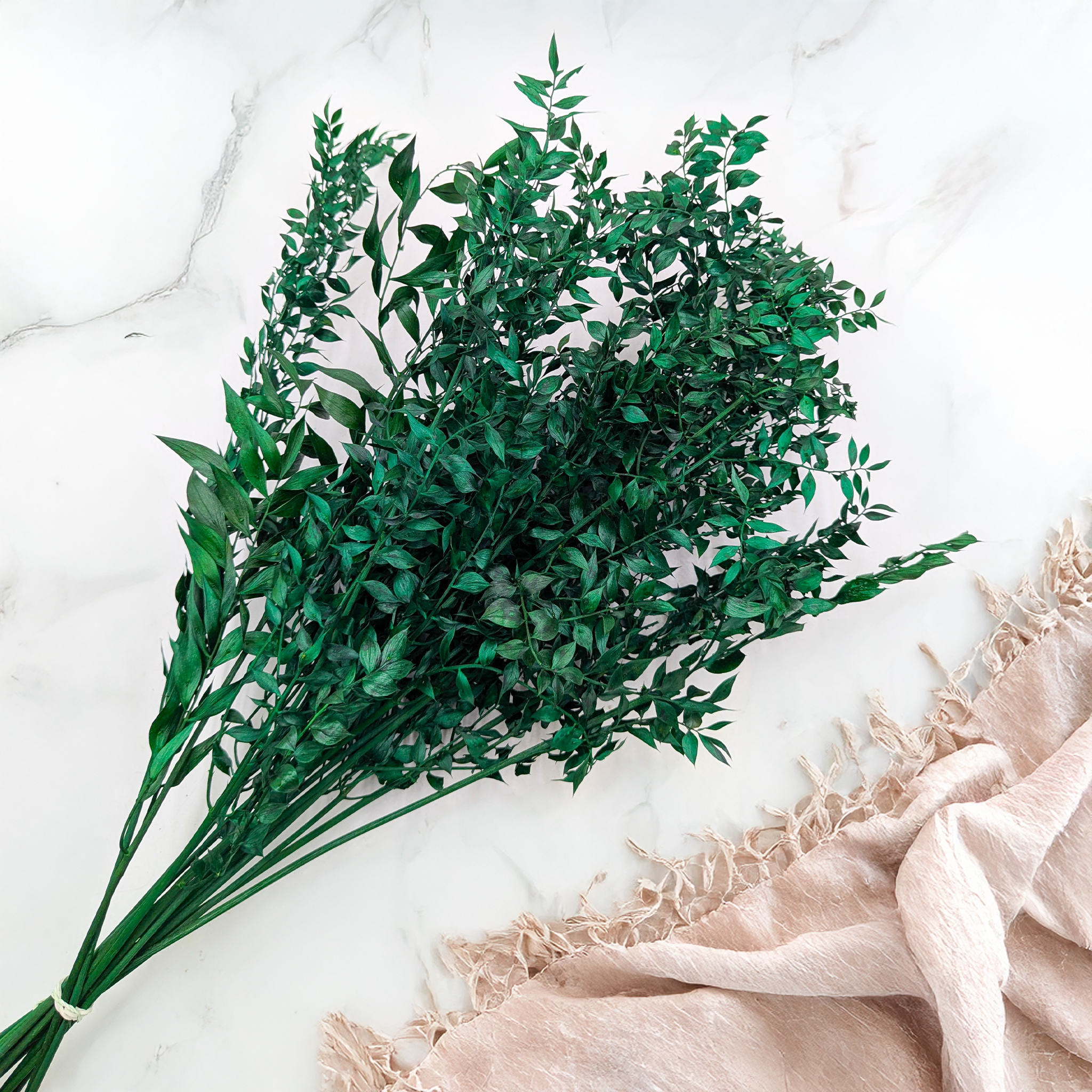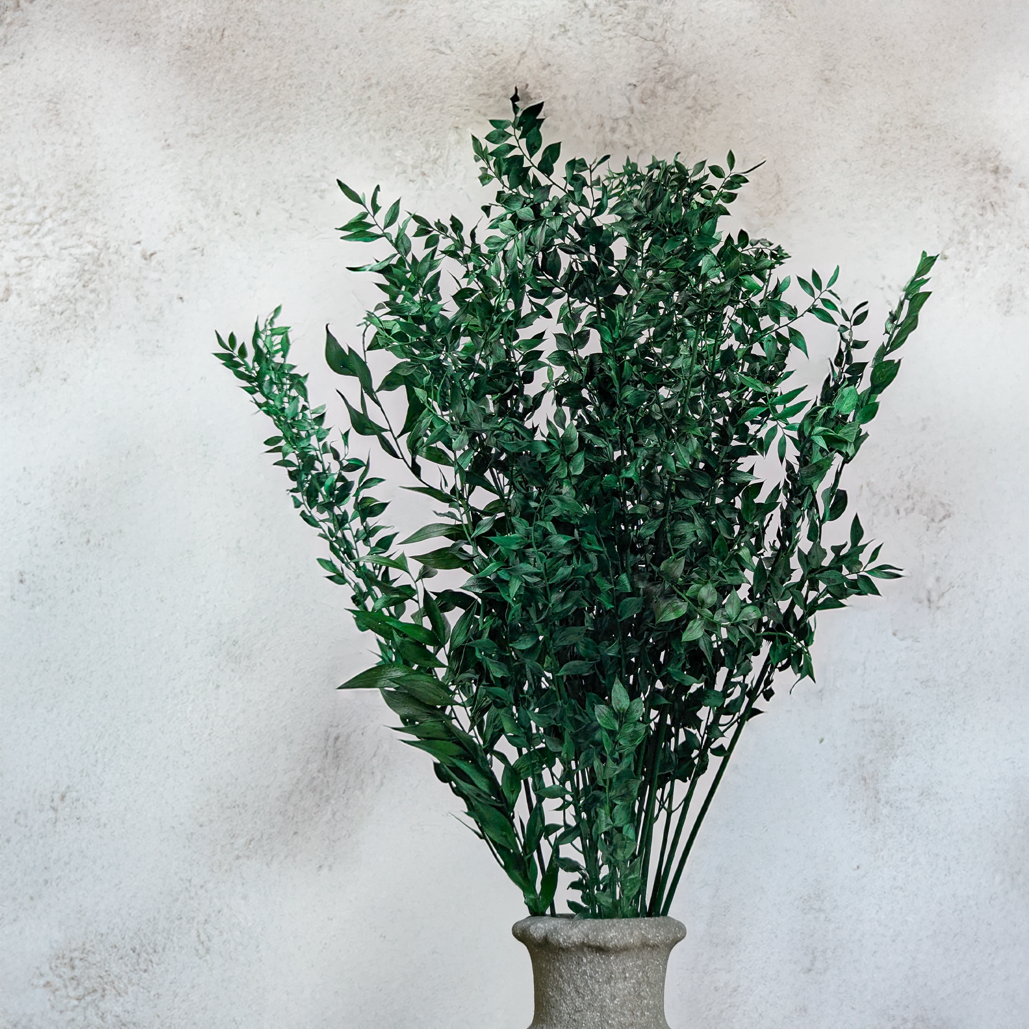 Getrockneter Ruscus in Grün ist ein universelles Dekorationsgrün, das Natürlichkeit mit Langlebigkeit verbindet. Durch den Trocknungsprozess behält er seine Form, Stabilität und den dezenten Farbton – ideal für klassische und moderne florale Arrangements. Er kann in seiner natürlichen Form oder mit Sprühfarbe eingefärbt verwendet werden, was zahlreiche Gestaltungsmöglichkeiten eröffnet.