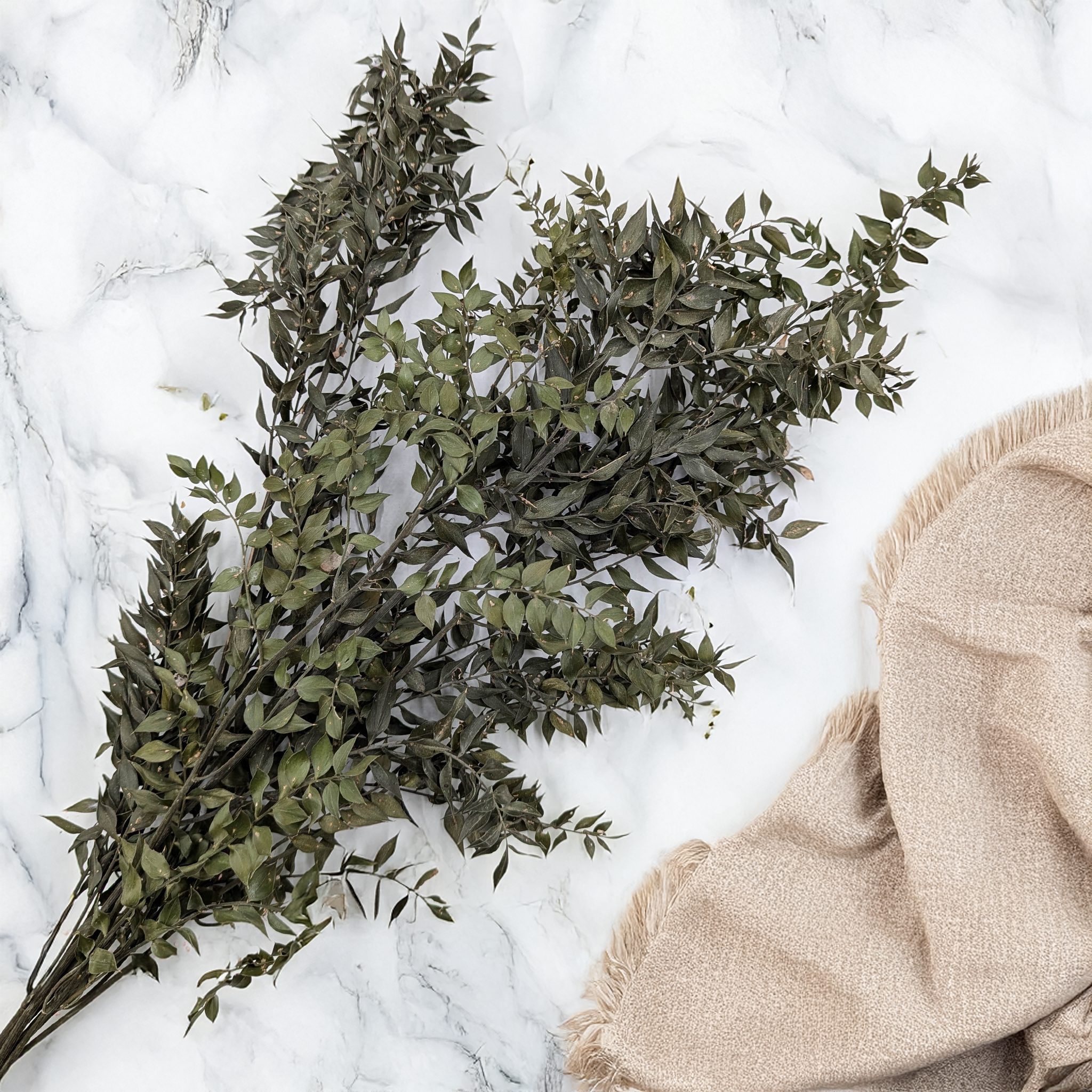 Getrockneter Ruskus in natürlichem Farbton ist ein beliebtes Floristikmaterial, das mit seiner zarten Grünfärbung und langlebigen Struktur überzeugt. Dank der Trocknung bleibt seine Form erhalten – ideal für Trockenblumenarrangements, DIY-Deko und Farbspray-Anwendungen.