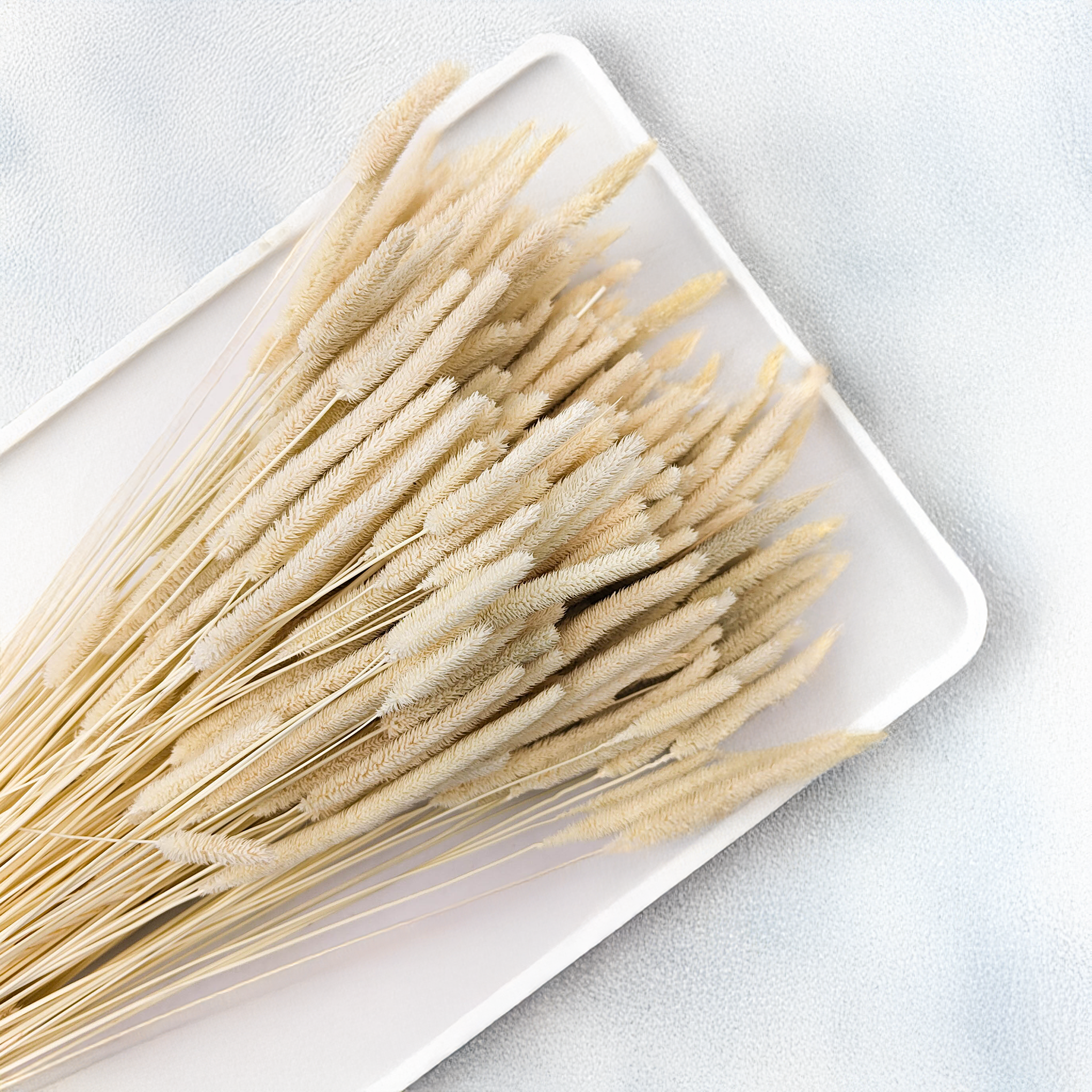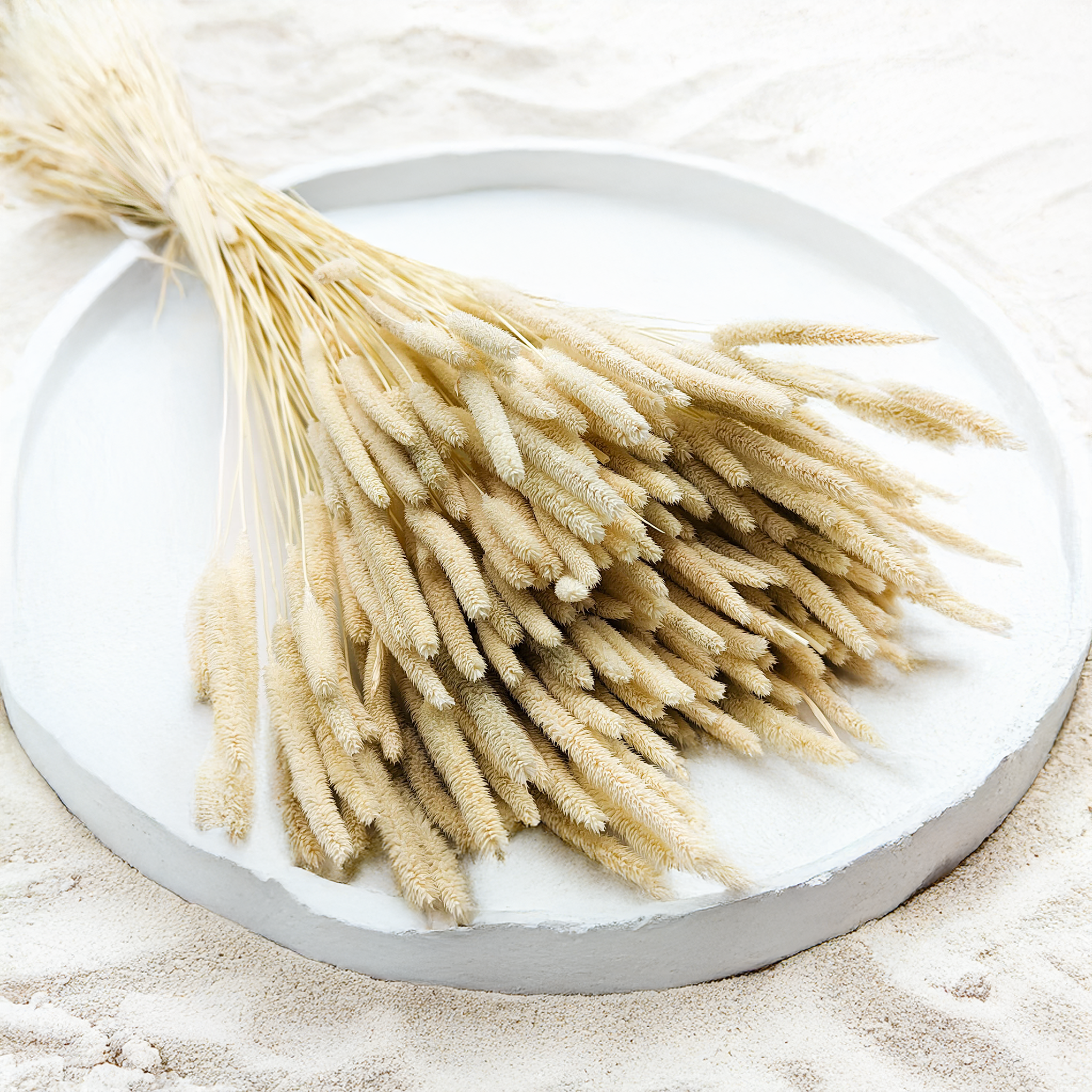 Das gebleichte Timotheegras ist eine stilvolle, natürliche Deko, die Leichtigkeit und Ruhe in jeden Raum bringt. Seine helle Farbe harmoniert wunderbar mit verschiedenen Einrichtungsstilen.