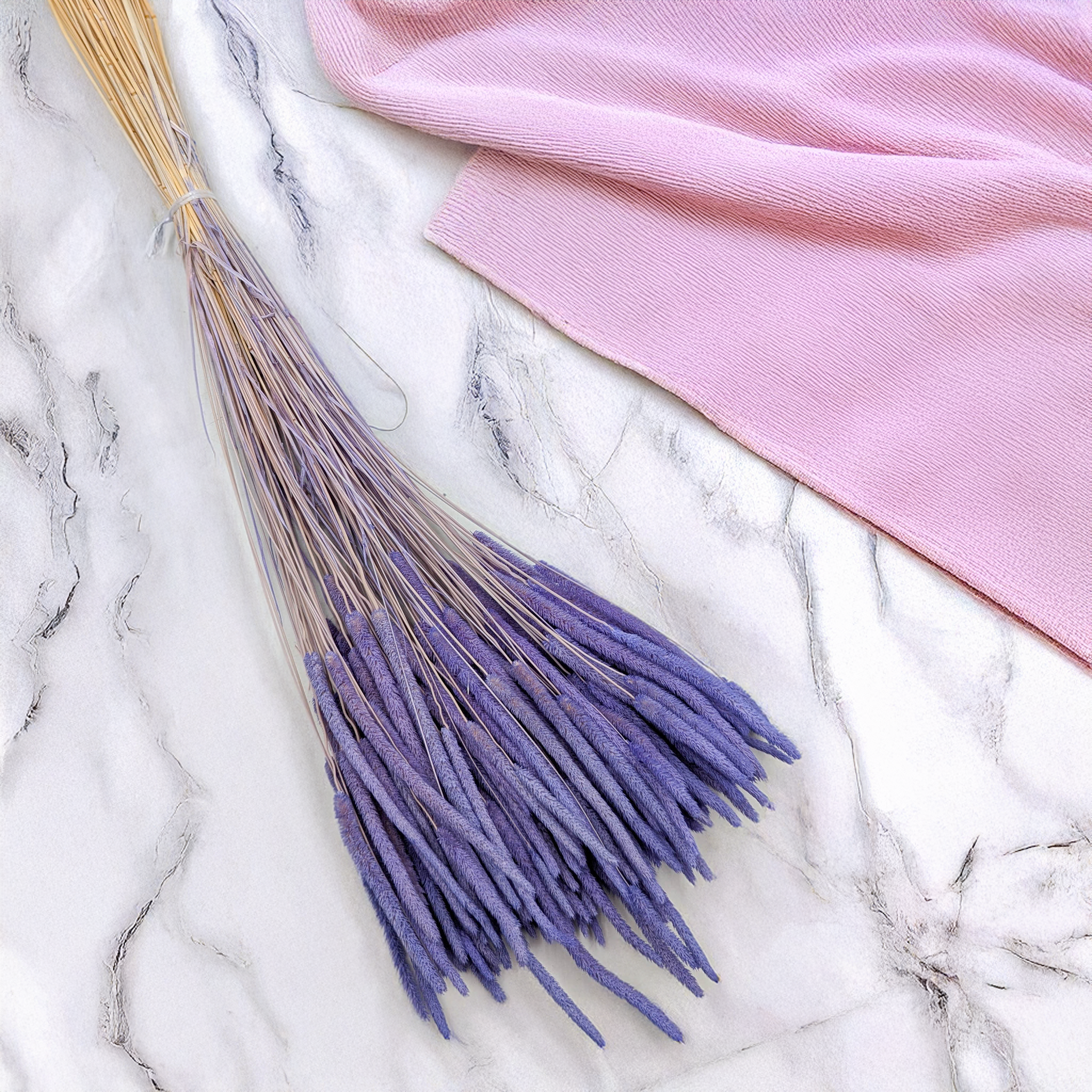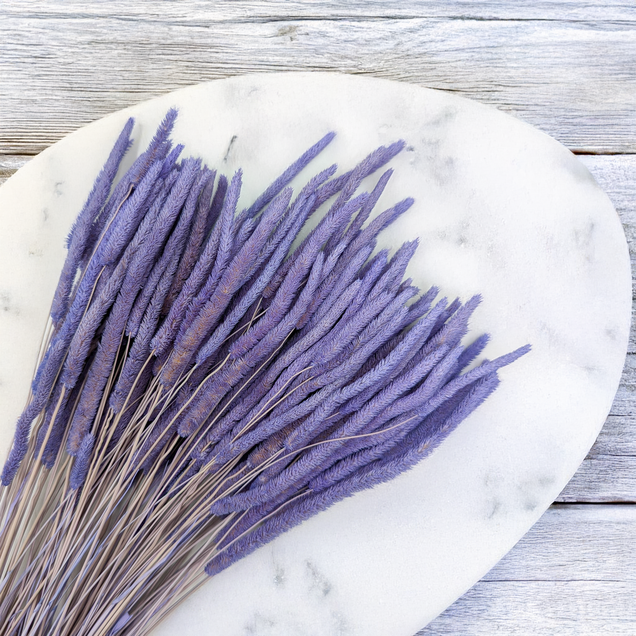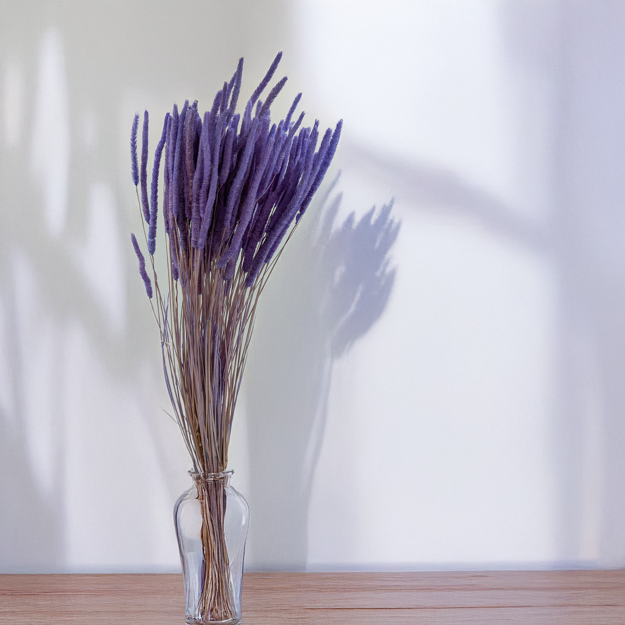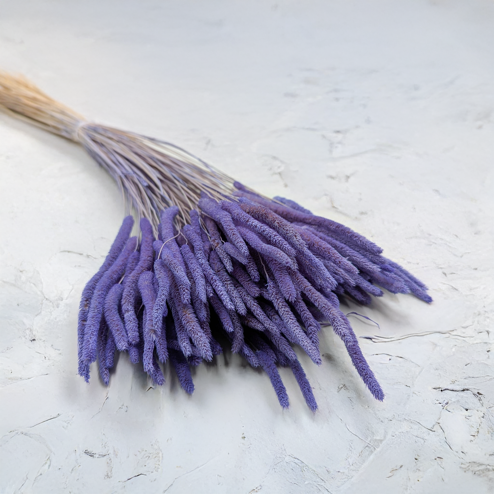 Lavendelfarbene getrocknete Timothee steht für dezente Eleganz in zarten Pastelltönen. Ihr kühler Fliederton bringt Ruhe und Harmonie in moderne wie auch klassische Arrangements.