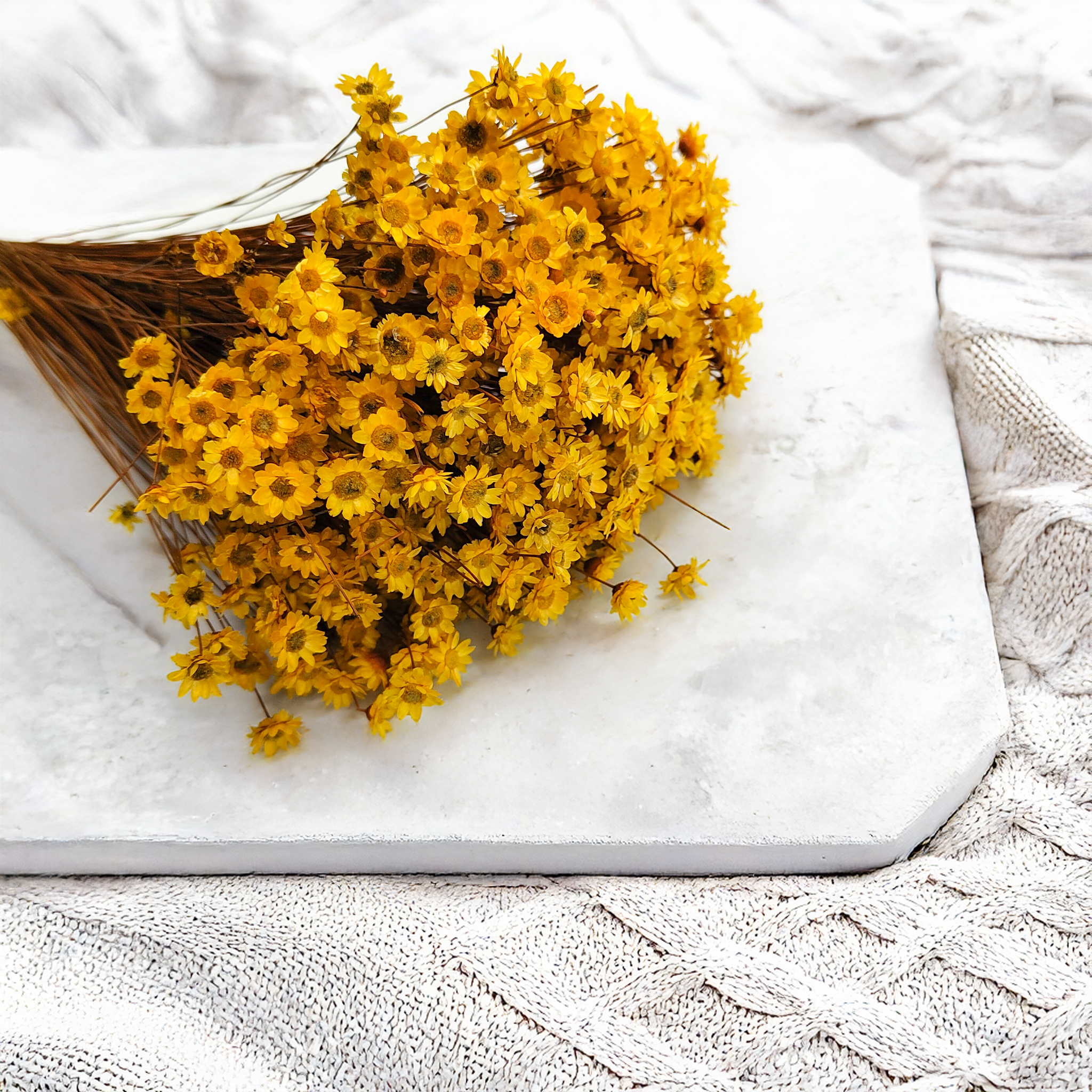 Gelbe getrocknete Glixia bringt Fröhlichkeit und Wärme in jede Dekoration. Sie ist perfekt für: