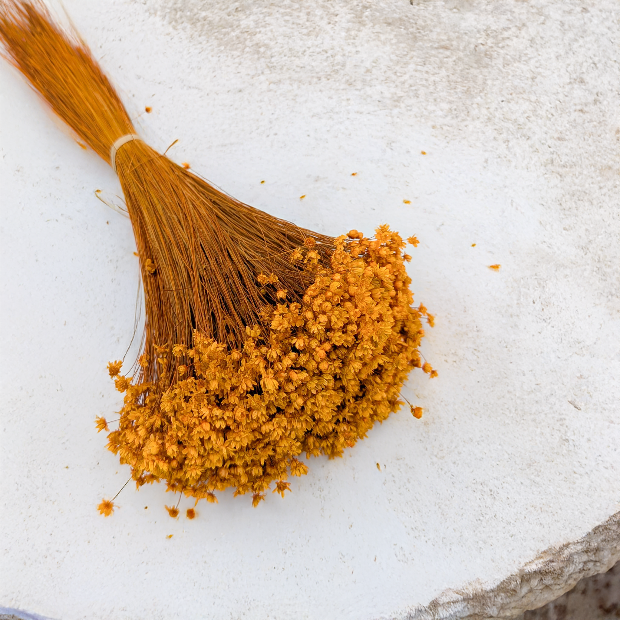 Getrocknete Glixia in Orange (Glixia Marcela, Comanthera) ist eine auffällige Dekoblume, die Lebensfreude, Wärme und Energie ausstrahlt. Der kräftige Farbton steht für Kreativität und Enthusiasmus – perfekt für fröhliche Dekorationen.