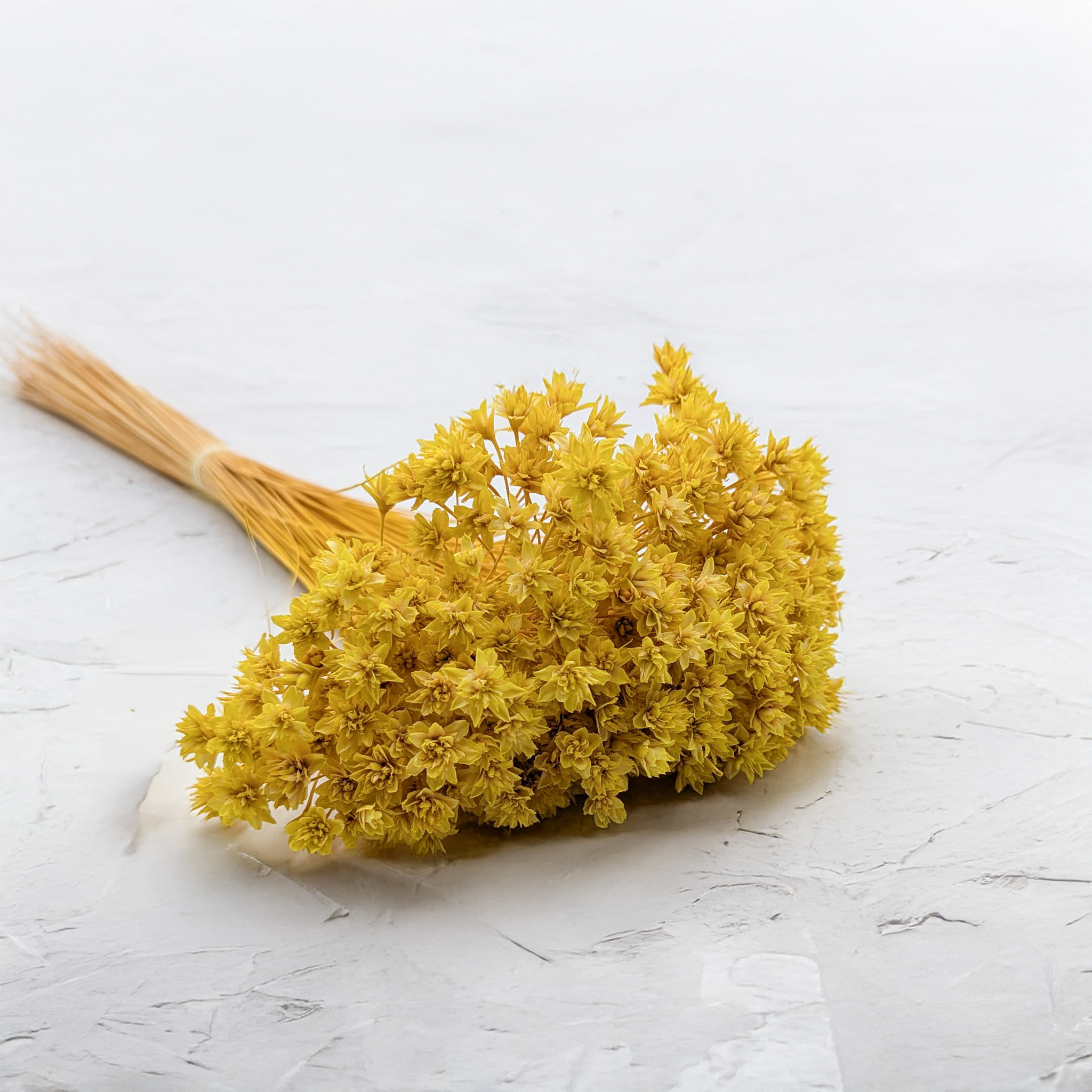Der Strauß getrockneter brasilianischer Hügelblumen in gelber Farbe ist eine originelle und lebhafte Dekoration. Diese Blumen stammen aus Brasilien und sind sehr langlebig, sodass Sie lange Freude daran haben können. Die gelbe Farbe passt gut zu anderen hellen Farbtönen wie Weiß, Grau, Grün und Lila. Getrocknete Blumen sind sehr vielseitig und können als Dekoration an vielen Orten verwendet werden, wie z. B. in Häusern, Büros, Restaurants oder Hotels. Ein Strauß brasilianischer Hügelblumen in gelber Farbe ist eine ideale Wahl für diejenigen, die lebhafte und energetische Farben schätzen. Diese Blumen können ein wunderschönes Geschenk zum Geburtstag, Namenstag oder anderen Anlässen sein, ebenso wie Dekorationen für Hochzeiten oder andere Feierlichkeiten.
