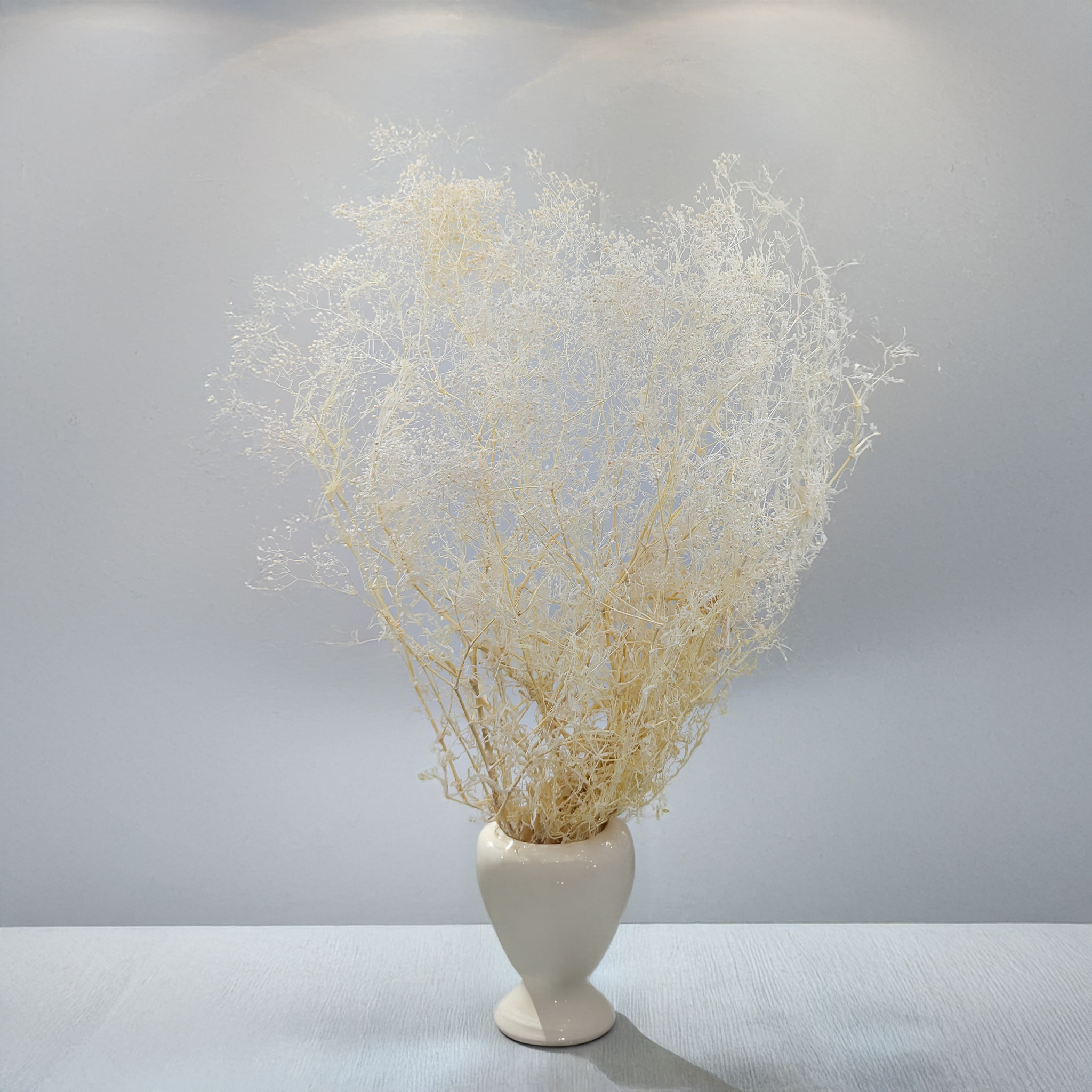 Das stabilisierte Schleierkraut MINI in gebleichter Farbe verleiht jeder Dekoration einen leichten, romantischen und natürlichen Charakter. Ideal für moderne und klassische Einrichtungen sowie floristische Arrangements. Kein Gießen oder Pflege nötig.