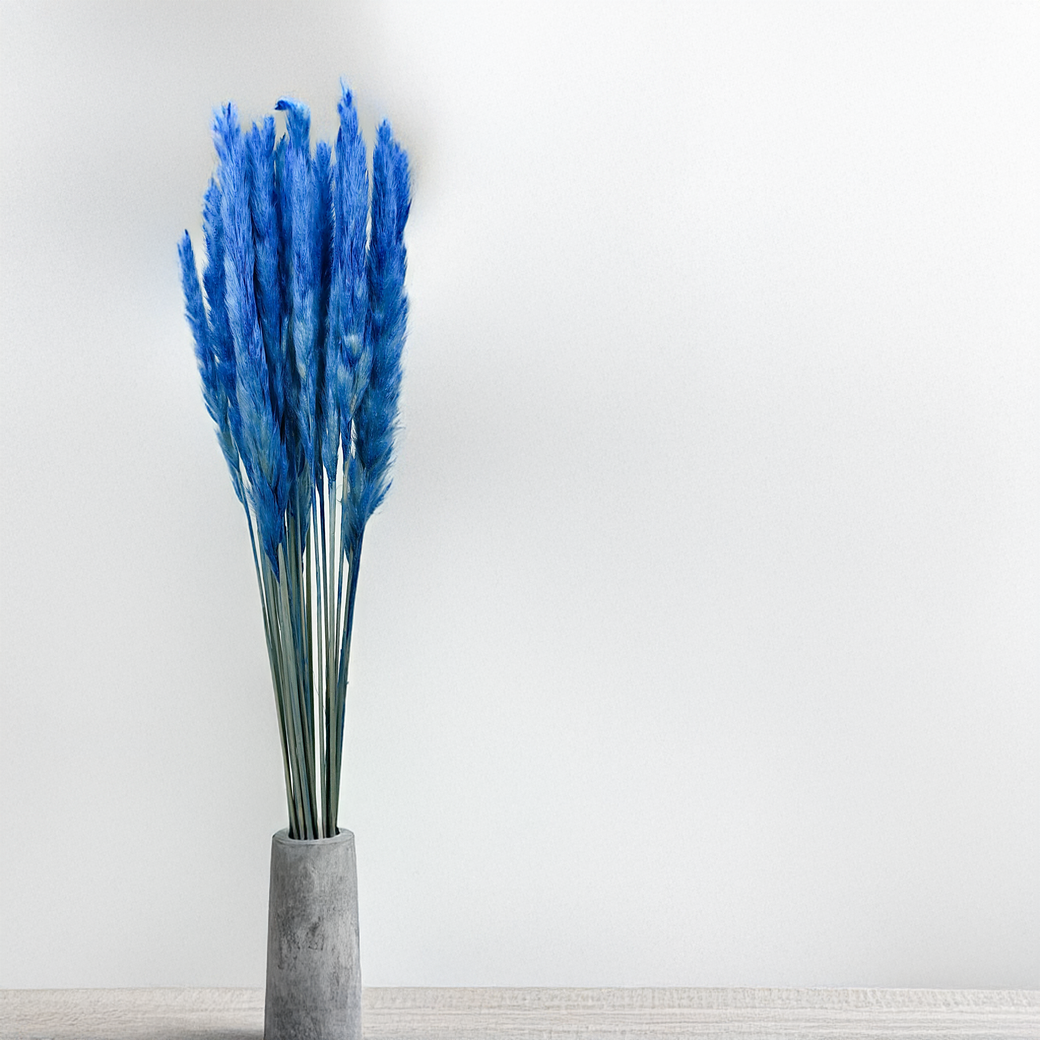 Getrocknetes Mini-Pampasgras in Blau ist ein einzigartiges dekoratives Gras mit einem natürlichen und eleganten Charakter. Seine zarten, flauschigen Federn verleihen Räumen Leichtigkeit und einen angenehmen Akzent. Diese wunderschönen Pampasgräser eignen sich perfekt für die Herstellung von Sträußen, Kränzen, Tischarrangements und Innenraumdekorationen. Es ist wichtig zu beachten, dass Pampasgras nicht Witterungsbedingungen und übermäßiger Sonneneinstrahlung ausgesetzt sein sollte, da diese seine Haltbarkeit und Erscheinung beeinträchtigen können. Brüche oder Biegungen in den Stielen sind für diese Art von Produkt normal, und die Samen des Grases können sich leicht lösen. Um das Volumen des Pampasgrases zu erhöhen, können Sie es vorsichtig mit einem Haartrockner föhnen. Getrocknetes Mini-Pampasgras in Blau verleiht jedem Innenraum Gemütlichkeit und Stil und schafft eine einzigartige Atmosphäre.