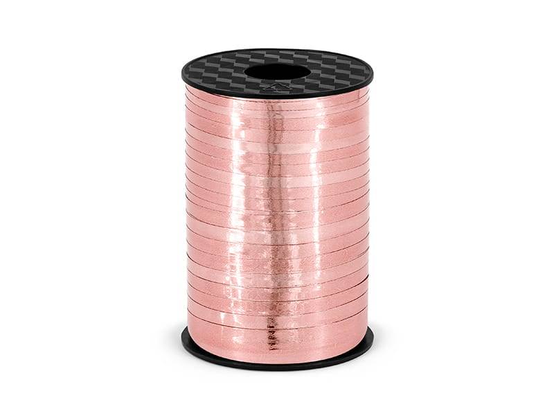 Metallisiertes Plastikband in Roségold, Breite ca. 5 mm, Länge ca. 225 m.