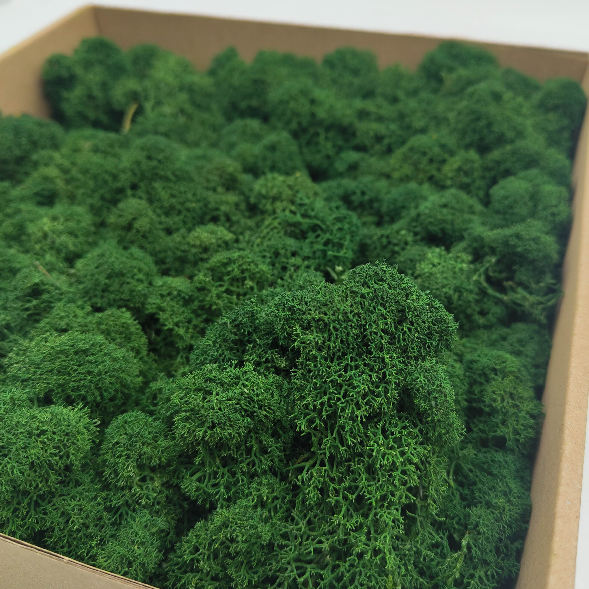 Finnisches Rentiermoos in Flaschengrün verbindet Natur mit Eleganz. Mit großen Köpfen, hoher Reinheit und natürlicher Stabilisierung ist es ideal für Wandpaneele, Moosbilder, Schriftzüge oder exklusive Dekorationen. Handgeerntet in Finnland und mit wasserbasierten Farbstoffen gefärbt.