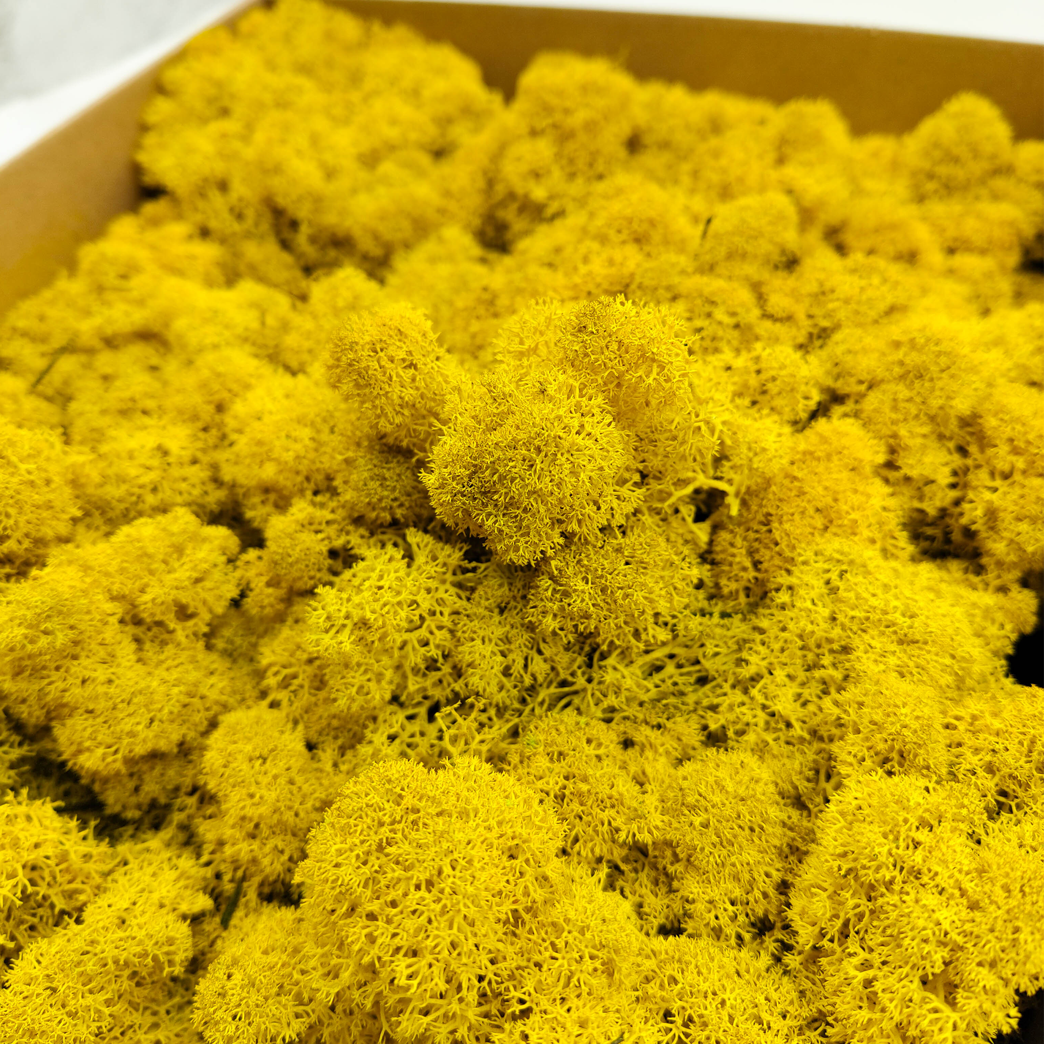 Gelbes Rentiermoos bringt Helligkeit und Lebensfreude in jede Gestaltung. Die großen, elastischen Moosköpfe bieten Struktur und Tiefe. Das Moos wurde sorgfältig gereinigt und mit umweltfreundlichen Farben eingefärbt – perfekt für kreative Projekte im Innenbereich.