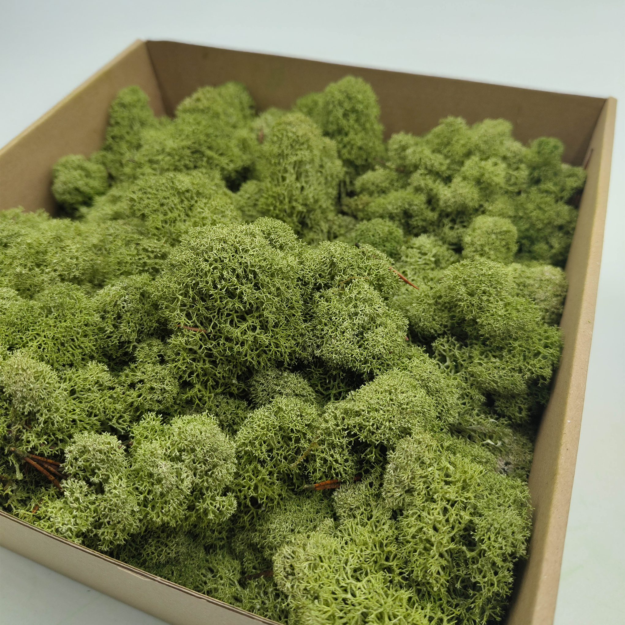Mittelgrün ist der universellste Farbton unter den gefärbten Rentiermoosen. Ideal für Logos, Wandbilder, Schriftzüge oder Dekobäume. Die großen Moosköpfe sorgen für ein gleichmäßiges, volumiges Erscheinungsbild mit hoher Verarbeitungsqualität.