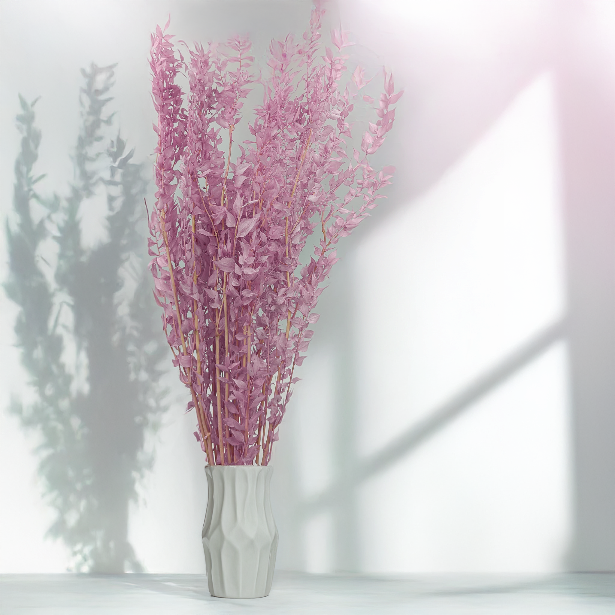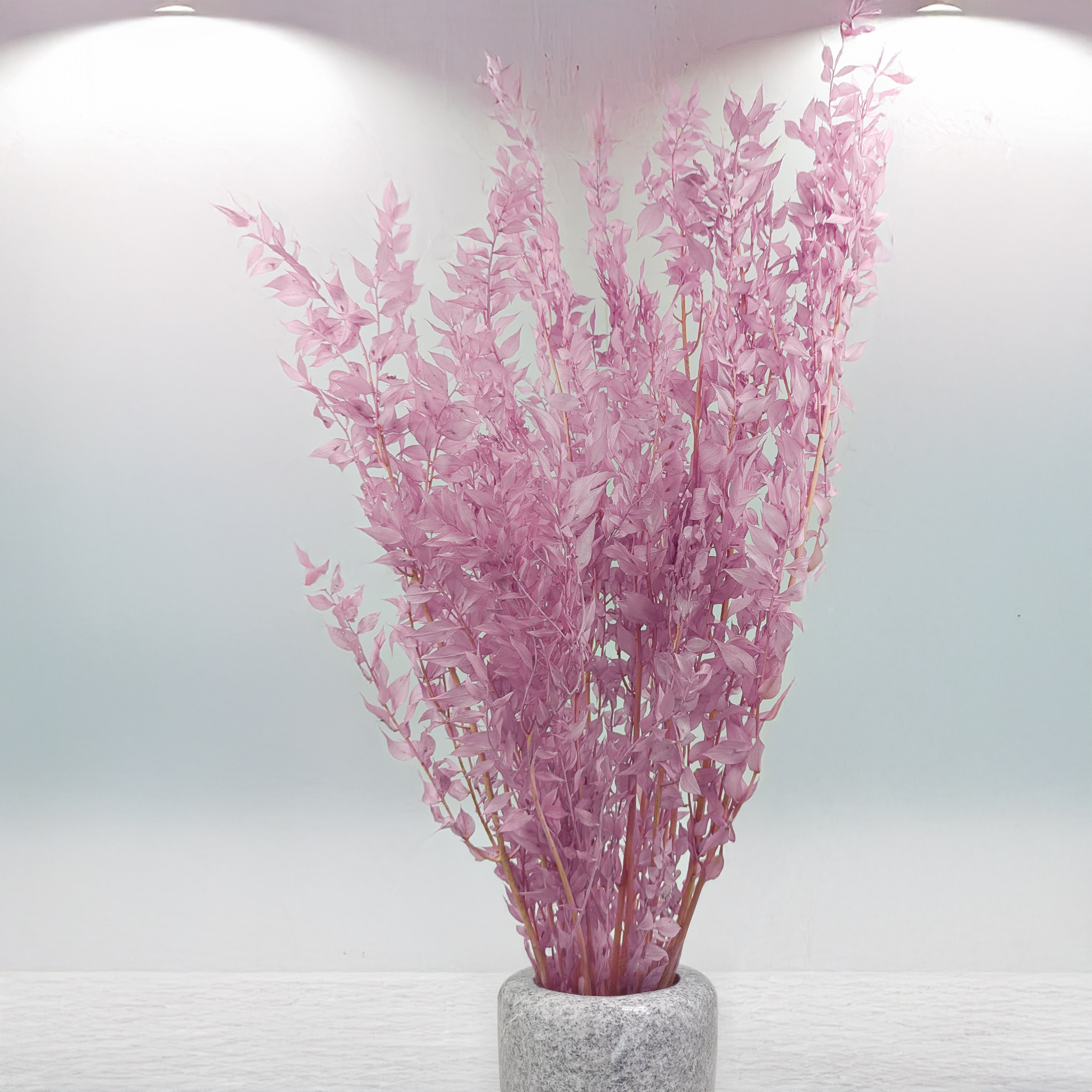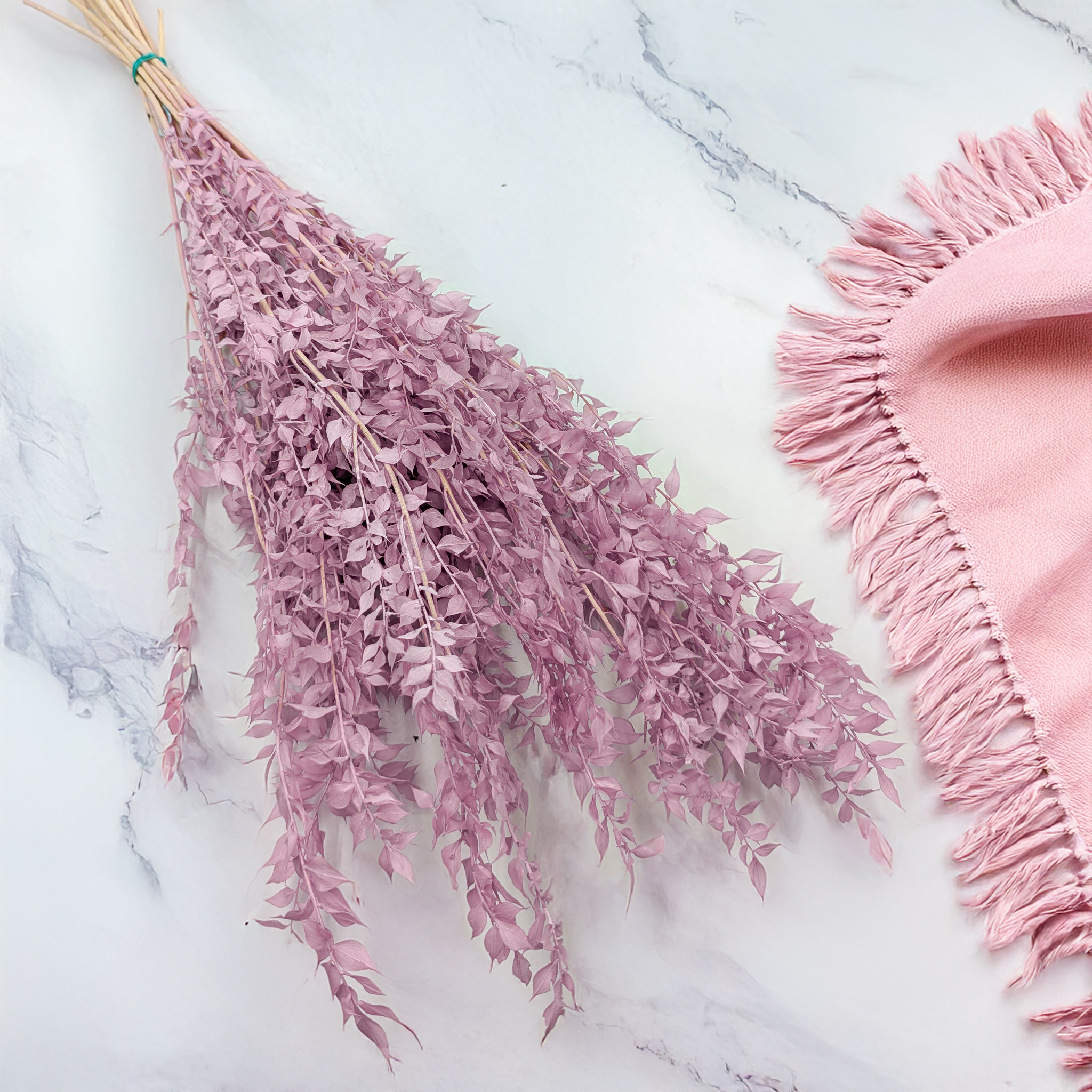 Stabilisierter Ruskus in Heide-Lila ist ein elegantes und zeitloses Dekorationselement, das jeder Gestaltung Romantik und feine Eleganz verleiht. Durch den Stabilisierungsprozess behält er sein frisches Aussehen, seine natürliche Form und Flexibilität über viele Monate, ohne Pflege zu benötigen. Seine Farbe passt perfekt zu modernen, rustikalen und Boho-Arrangements.