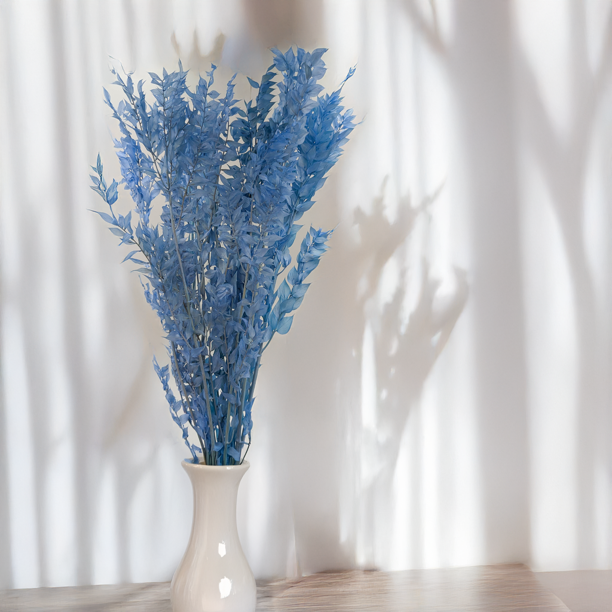 Stabilisierter Ruskus in Stahlblau ist ein modernes und elegantes Dekorationselement, das sich durch seinen kühlen und edlen Farbton auszeichnet. Durch die Stabilisierung behält er seine natürliche Struktur, frische Optik und Flexibilität über viele Monate hinweg – ganz ohne Pflege. Perfekt für moderne, minimalistische und glamouröse Arrangements.