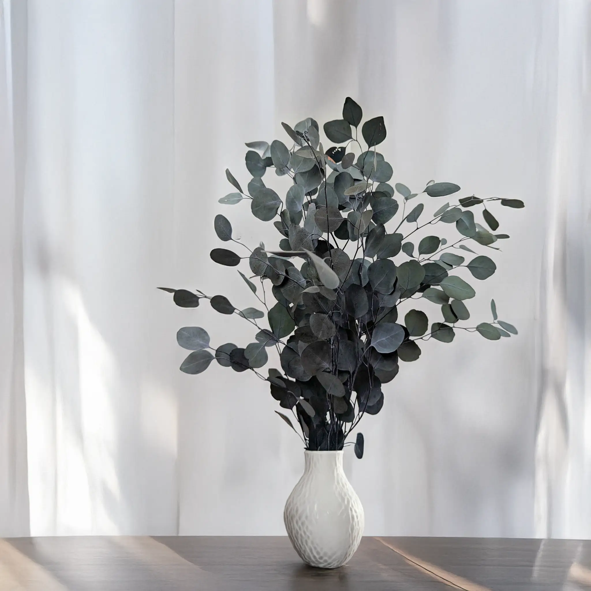 Grüner Populus ist eine der eindrucksvollsten Eukalyptusarten, geschätzt für seine großen, runden Blätter und sein üppiges Volumen. Durch die Stabilisierung bleibt sein natürliches Aussehen und seine weiche Struktur lange erhalten. Ideal für Hochzeitsdekorationen, Events, Girlanden und Vasenarrangements – sowohl als Basis als auch als Hauptakzent.