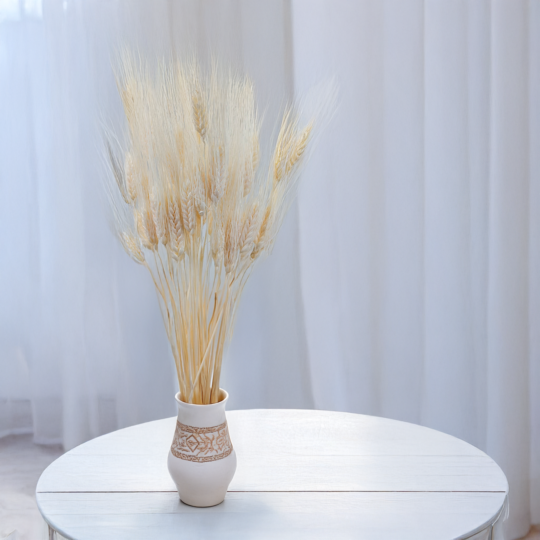 Dieser getrocknete Triticale in hellem Gelb bringt Wärme und Frische in jedes Ambiente. Er steht für Lebensfreude, Leichtigkeit und Natürlichkeit – perfekt für Dekorationen im Landhausstil, Boho oder Vintage.