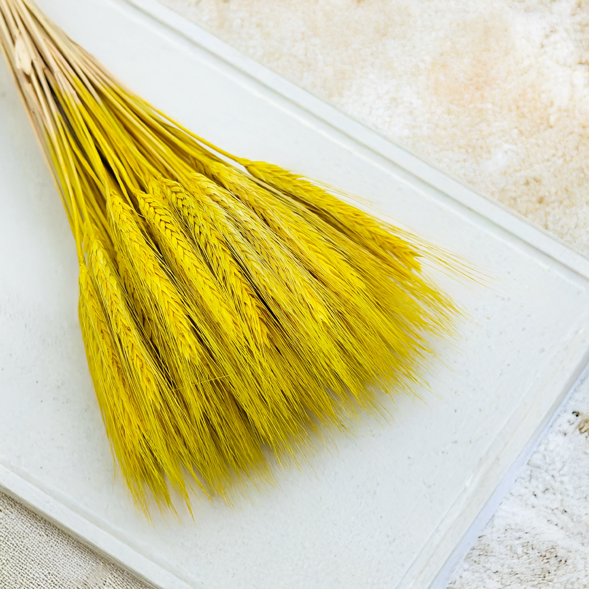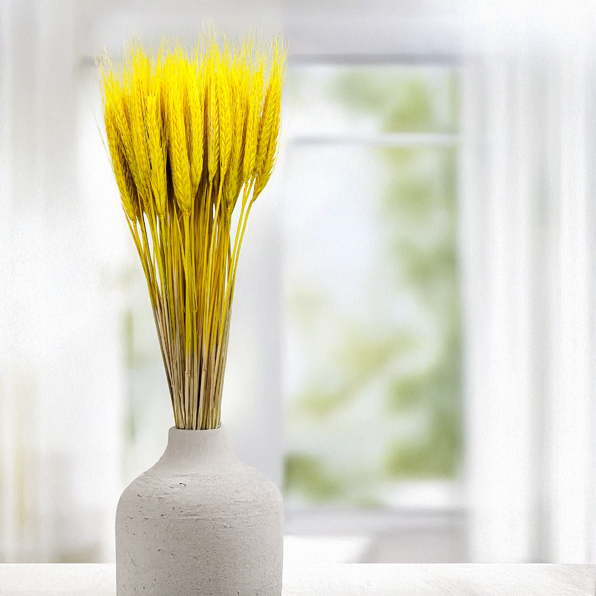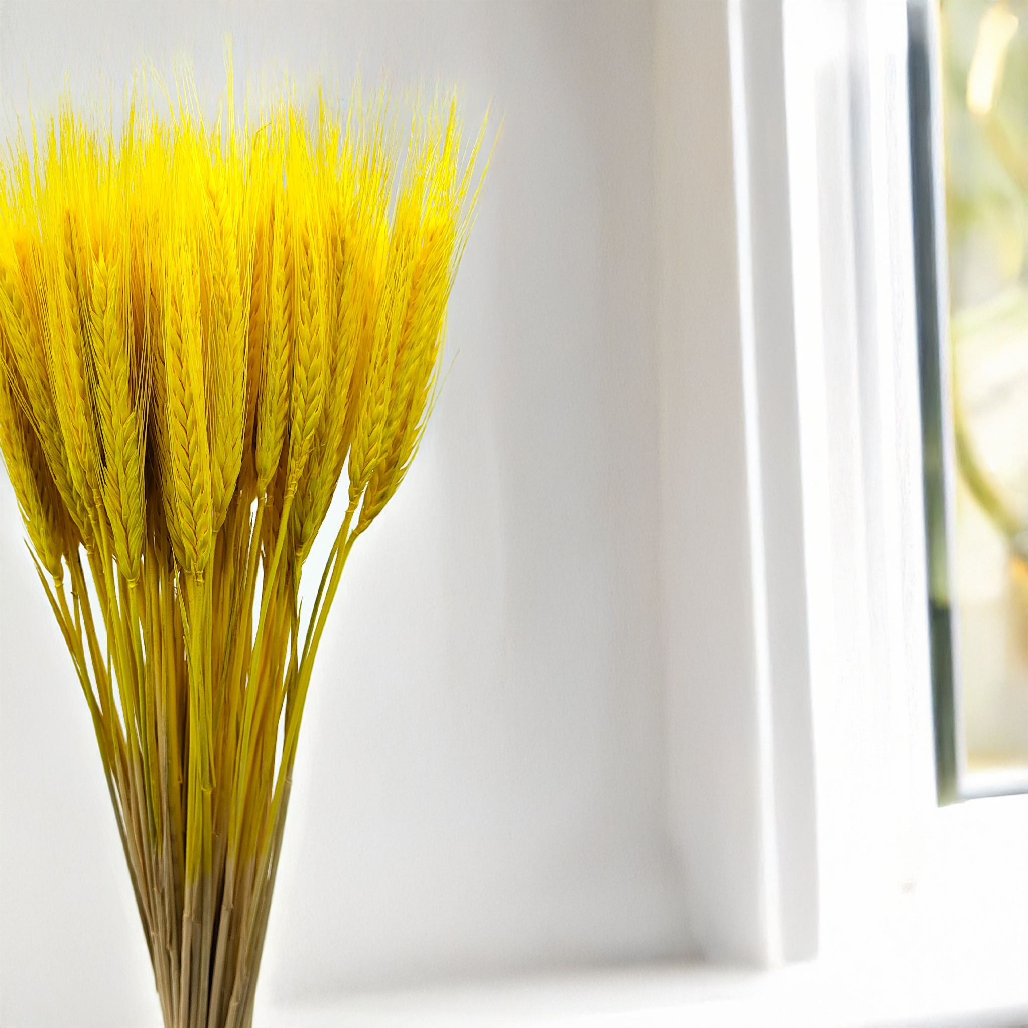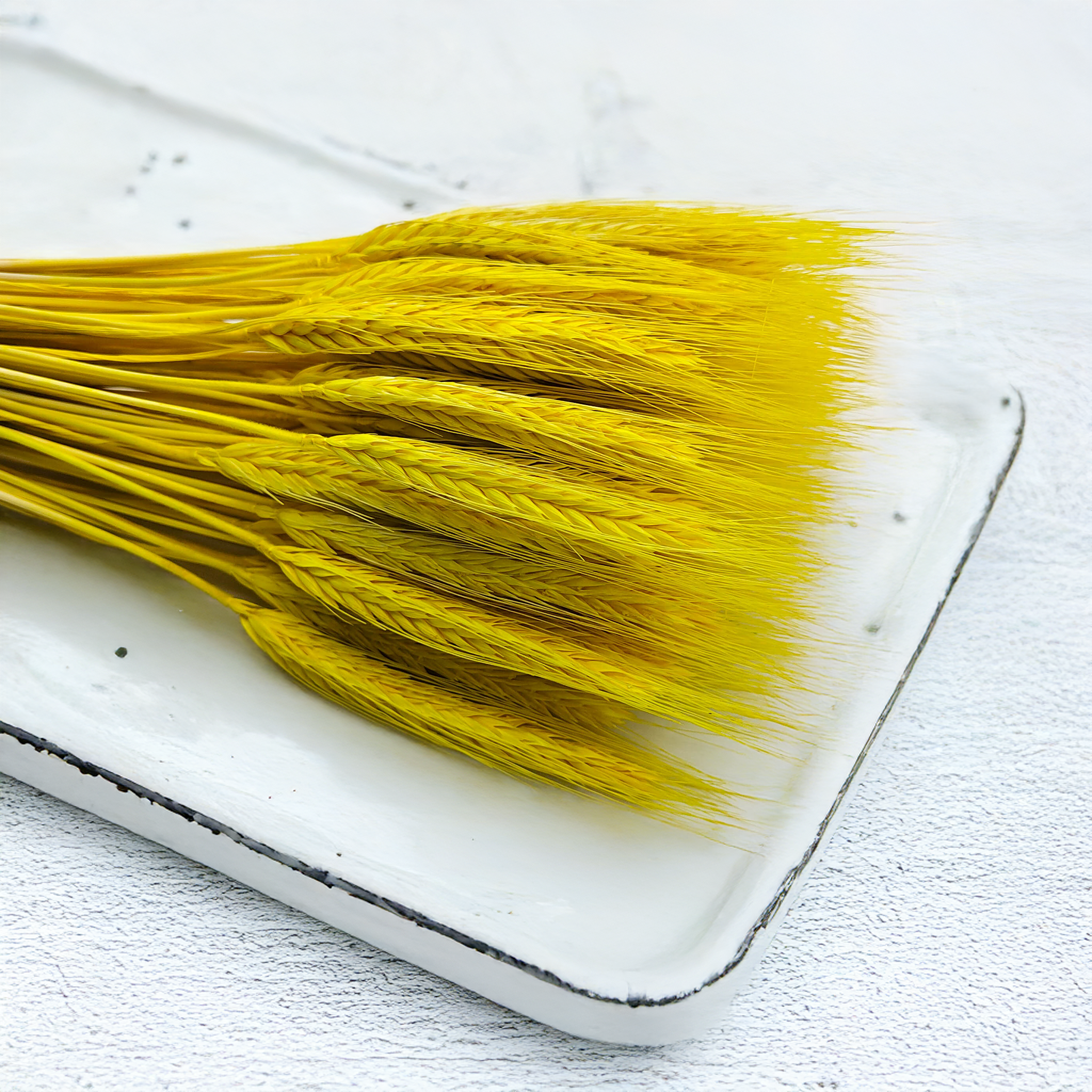 Dieser getrocknete Triticale in hellem Gelb bringt Wärme und Frische in jedes Ambiente. Er steht für Lebensfreude, Leichtigkeit und Natürlichkeit – perfekt für Dekorationen im Landhausstil, Boho oder Vintage.